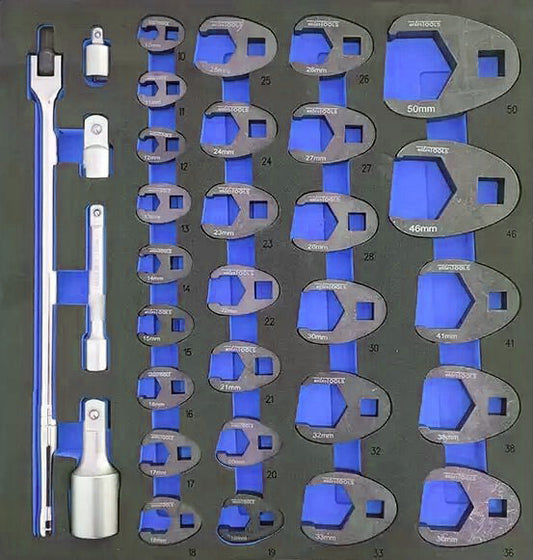 3/8", 1/2" & 3/4" Crow'S Foot Spanner Set 32 Piece, Sizes 10-50mm