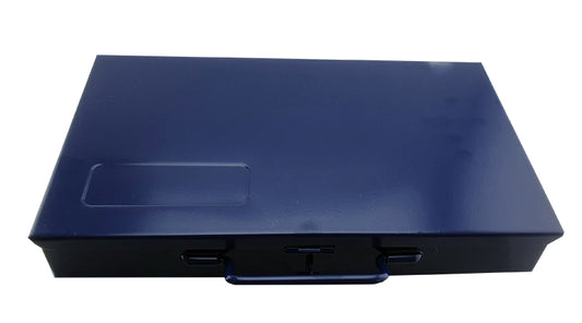 Dark Blue Metal Tool Case With Hinged Lid And Latch, Ideal For 3/8" Socketry