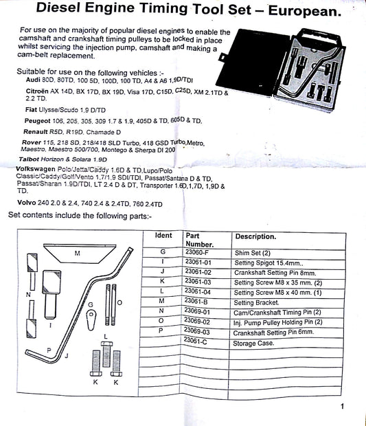 Diesel Engine Timing Tool Set - European