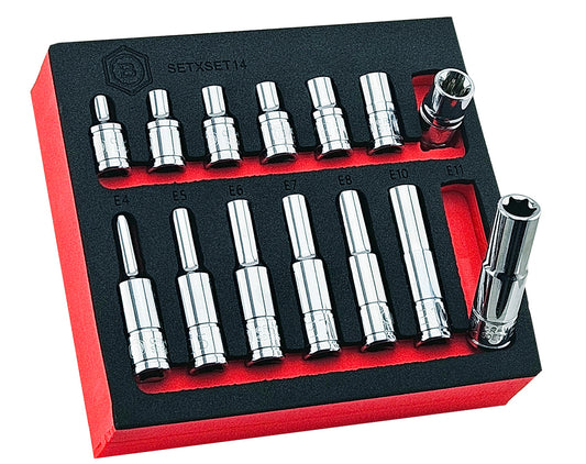 14Pc E-Torx/Star Socket Set Standard & Deep Sizes E4-11 - 1/4" Drive - Britool Hallmark