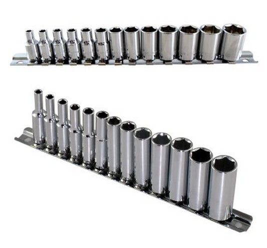 Britool 1/4" Drive Standard & Deep Socket Sets 4-14mm + Extension Bar Set