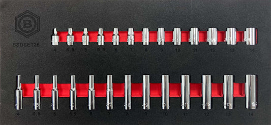 26Pc 1/4" Drive Standard & Deep Hexagon (6-Point) Socket Set - Britool Hallmark