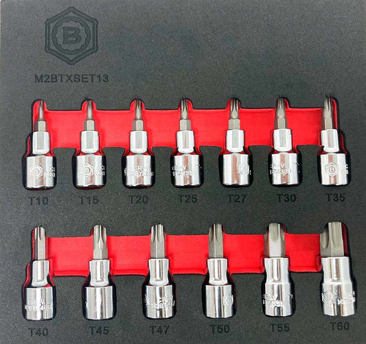 13Pc 1/4" & 3/8" Drive Long Tamperproof Torx / Star Bit Socket Set