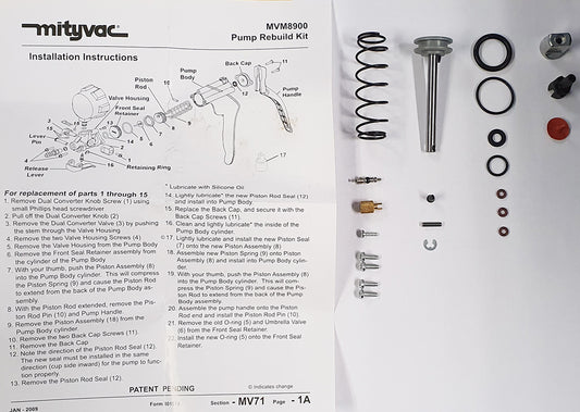 Pump Rebuild Kit For Mityvac Silverline Mv8500 / Mv8510