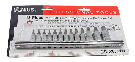 13Pc 1/4" & 3/8" Drive Tamperproof Torx Bit Socket Set From Genius Tools