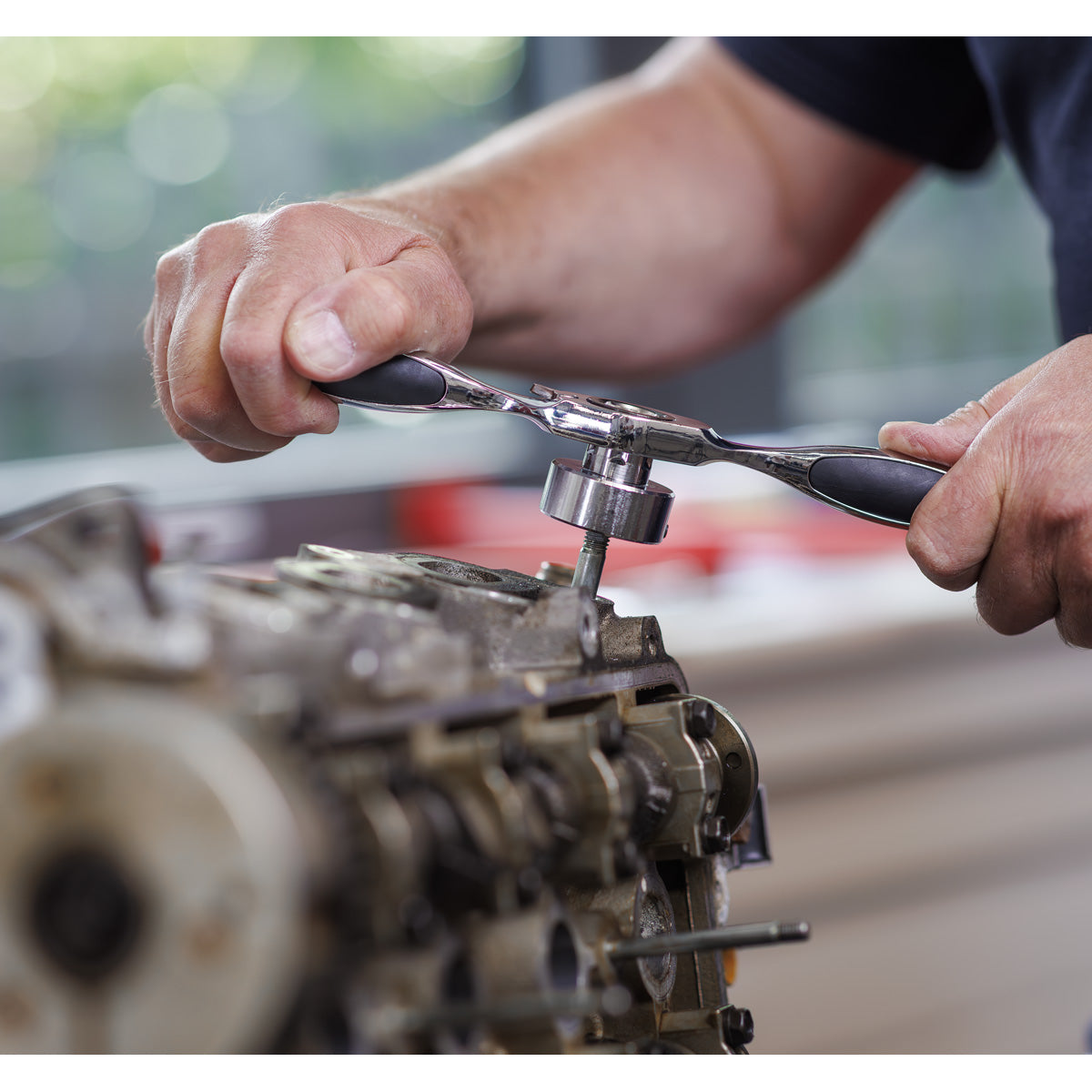 This Tap and Die Holder Set is a versatile solution for threading and re-threading tasks, designed for both professionals and dedicated DIY users. The set includes a long-handled 72-tooth reversible ratchet, delivering smooth operation and precise control in confined spaces. The ratchet’s fine-tooth mechanism allows for minimal movement between clicks, making it easier to work efficiently in tight areas.