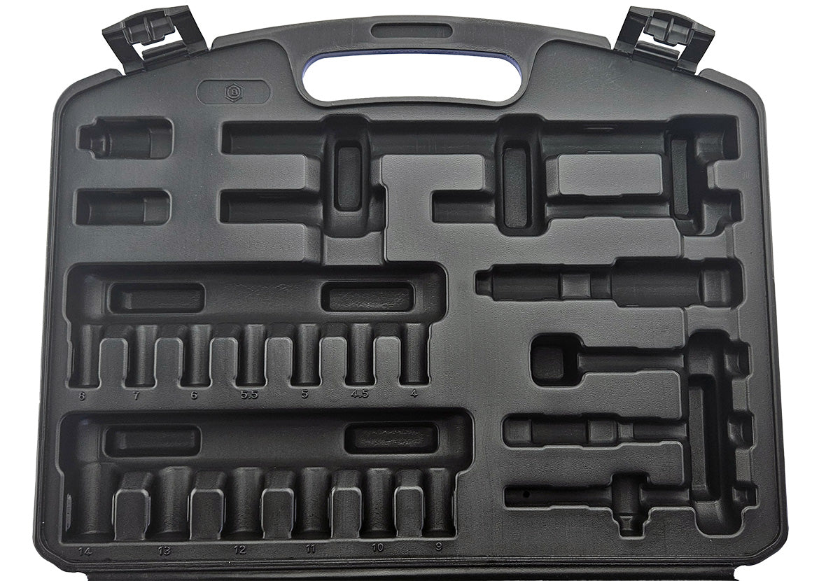 Deep sockets: 4, 4.5, 5, 5.5, 6, 7, 8, 9, 10, 11, 12, 13, 14mm