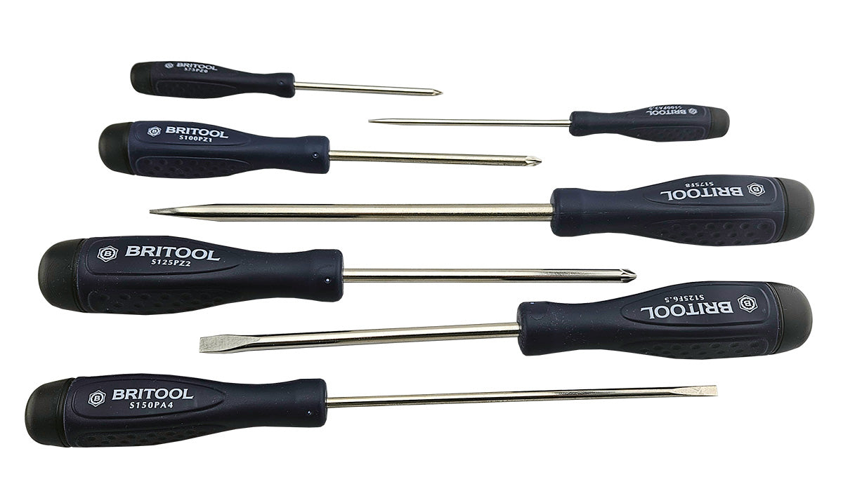 7pc Britool screwdriver set with ergonomic handle for added comfort and grip.