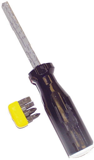 This magnetic bit holder from Cal-Van Tools USA securely holds insert bits in place in the driver, yet allows for quick and easy bit changes. With a convenient storage compartment in the screwdriver style handle, the driver keeps bits at hand for efficient and simple changes.