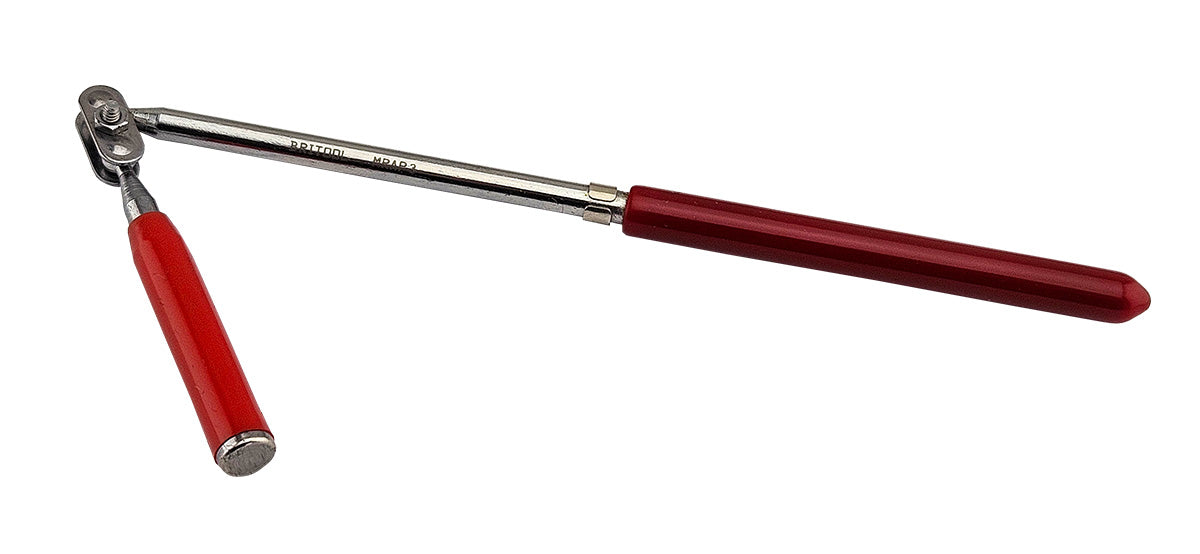 Handy magnetic pick-up tool with swivel joint for improved access in tight spaces.